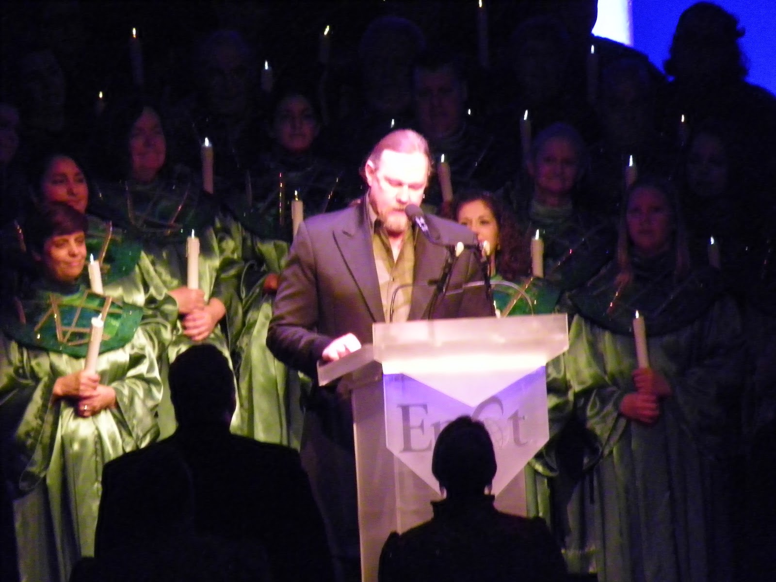 Lindsea and Travis were both singing in the Candlelight Processional at Epcot. I waited in line, but the best I could do was a bench in the back. So I spent 20 minutes playing Where's Lindsea and Travis? Can you see anyone you know? Yeah, it's not her. She's blonde but not her. Erase those 20 pictures.